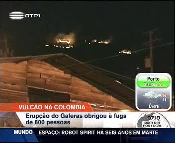 Na Colômbia, o vulcão Galeras entrou em erupção na e já obrigou à saída de 800 pessoas. As pessoas foram retiradas de casa porque vivem próximo do vulcão e as rochas incandescentes estão a cair cada vez mais perto. As autoridades dizem que ainda não há registo de feridos ou de bens destruídos.