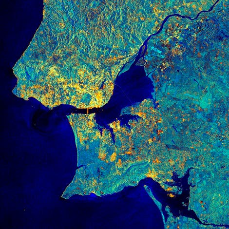É uma outra visão sobre a capital portuguesa, uma imagem radar tirada do espaço, impossivel de ser captada normalmente pelos olhos humanos.