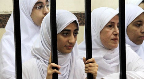 A sessão do julgamento foi transmitida pela televisão a partir do tribunal em Alexandria e provocou uma reação geral de repulsa. "Houve um grito de protesto e tenho a dizer que foi transversal, quando muitos egípcios olharam para estas raparigas, vestidas de branco, sentadas numa jaula e muito novas ainda," afirmou um jornalista da televisão Al Jazeera no Cairo.