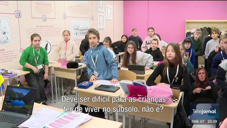 Ainda na Ucrânia, milhares de alunos têm aulas em abrigos resistentes a radiações e impactos nucleares.
