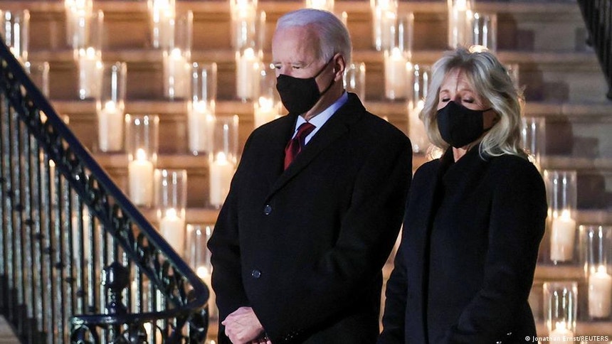 O presidente norte-americano, Joe Biden, organizou uma homenagem às vítimas, em claro contraste com o antecessor, Donald Trump, que minimizou a pandemia e resistiu inicialmente à adoção de medidas preventivas, como o uso de máscara.