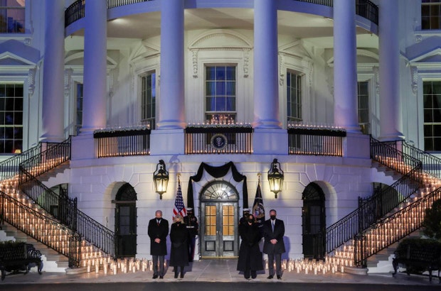 Acompanhado da mulher e pela vice-presidente, Kamala Harris, os dois governantes fizeram um minuto de silêncio em memória das vítimas, cercados por centenas de velas que iluminavam a Casa Branca.