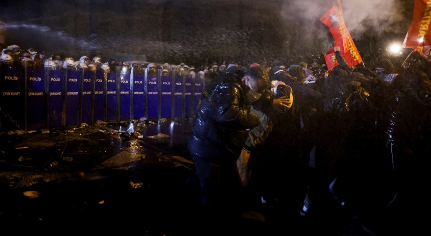 em Istambul contra a prisão do presidente da câmara da cidade, Ekrem Imamoglu, principal rival do presidente Recep Tayyip Erdogan.