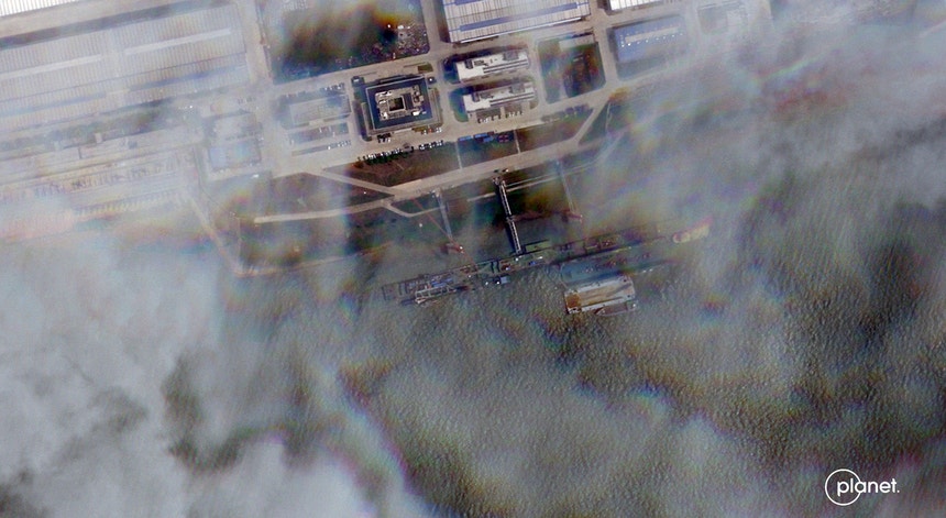 Uma imagem de satélite registada em 10 de março mostra o submarino atracado no porto, enquanto outras imagens de junho mostram que o submarino não regressou à doca.