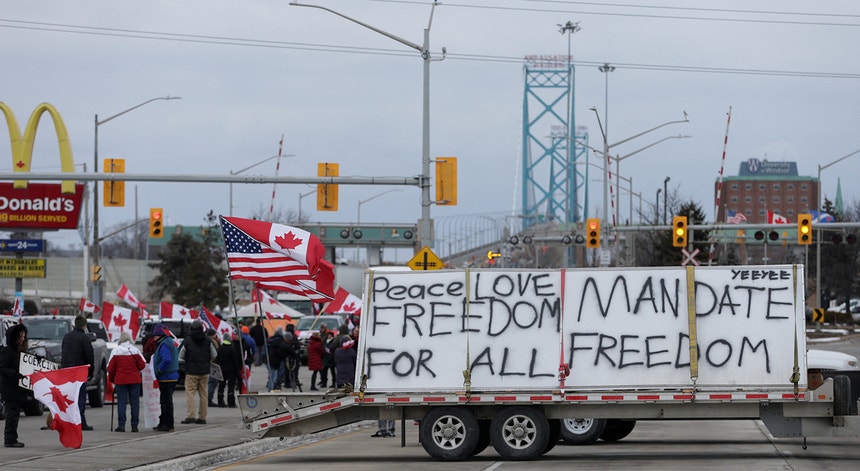 Do lado do Canadá, grupos de camionistas críticos das restrições sanitárias do primeiro-ministro, Justin Trudeau, estão a bloquear o acesso à ponte há quatro dias, causando sérios problemas de abastecimento a vários setores, incluindo a indústria automóvel.