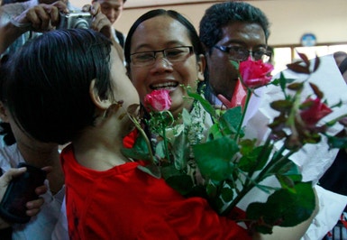 Naing, o líder estudantil, terá sido saudado por uma multidão entusiástica que o esperava à porta da prisão, em Thayet, 545 quilómetros a norte de Rangum.