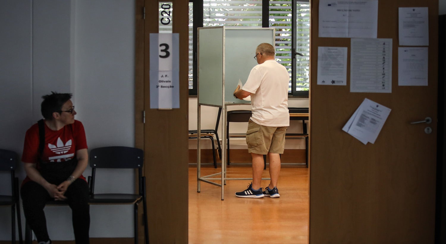 Sol, temperatura perto dos trinta graus, distrito de Lisboa. Na Escola Básica Conde de Ferreira, em Oeiras, os corredores estão vazios. Cartazes indicam o caminho entre bonecos que habitam as paredes: “AR a AT” na sala 3, “DF a EA” no ginásio…