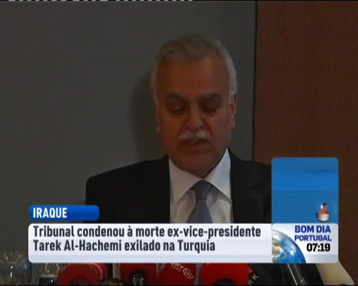 O ex-vice-presidente do Iraque foi condenado à morte por um tribunal de Bagdade. Tareq Al-Hashemi é acusado de dirigir um esquadrão da morte, responsável pelo assassínio de vários juízes e de altos funcionários iraquianos. Hashemi, que está refugiado na Turquia, rejeita as acusações, alegando que o tribunal foi manipulado pelo primeiro-ministro com objectivos políticos.