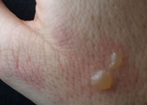 A explosão e o incêndio deixaram a mulher com o rosto e o cabelo chamuscados e bolhas nas mãos.