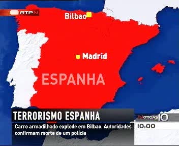Uma viatura armadilhada explodiu esta manhã na cidade basca de Bilbau, Espanha. A deflagração matou um inspector da polícia espanhola ligado à luta antiterrorista. O carro estava estacionado no bairro de Santa Isabel e a explosão provocou um incêndio que se propagou a outras viaturas.