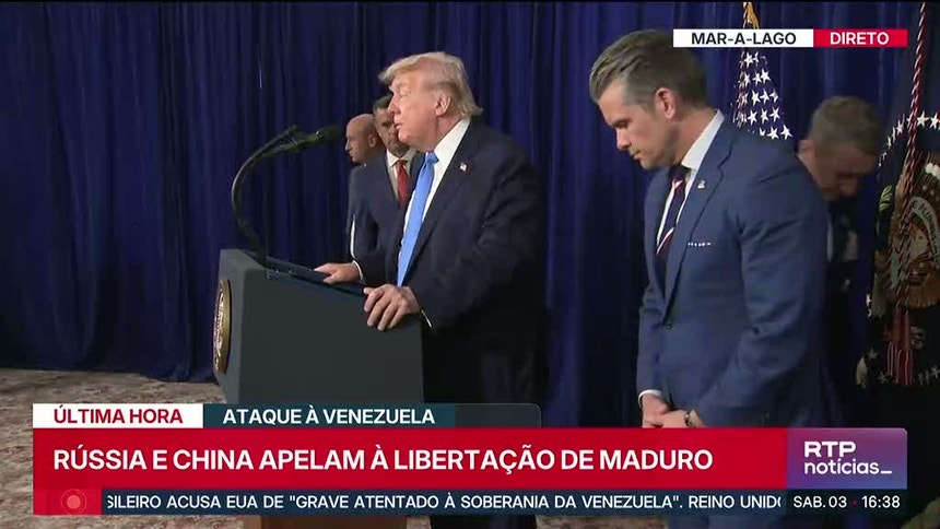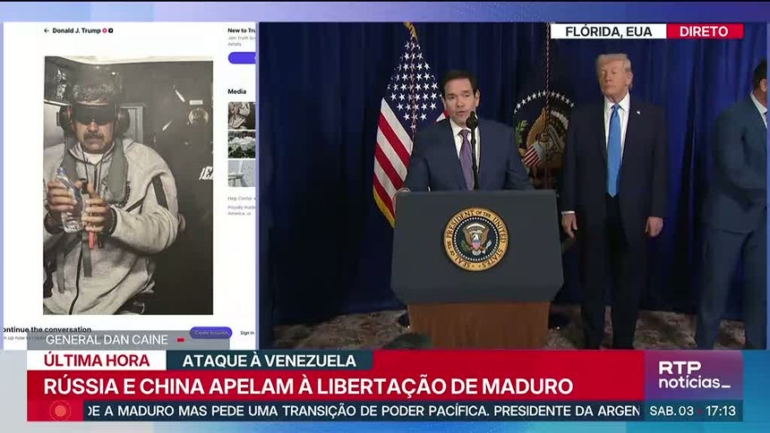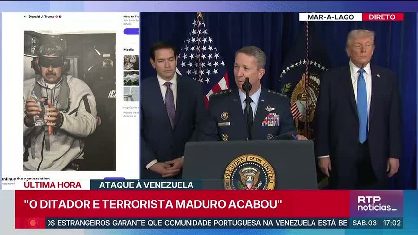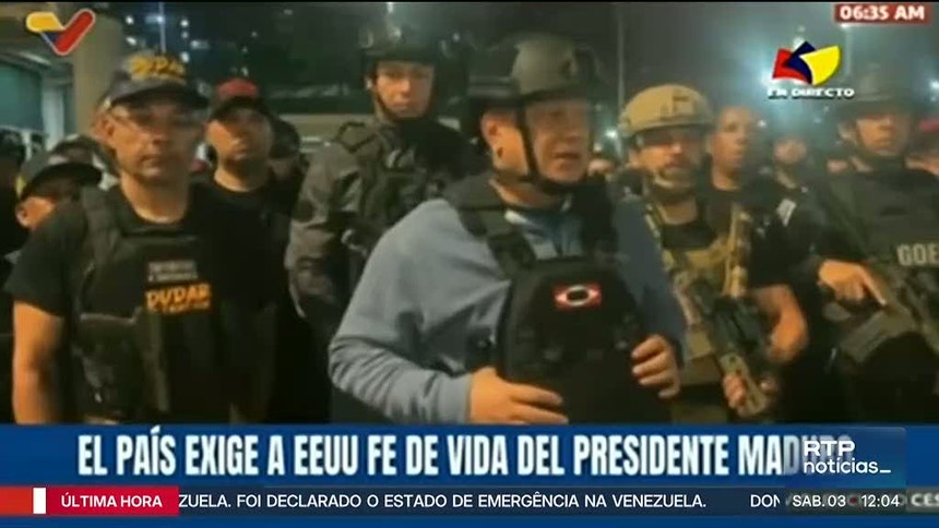 "Desconhecemos o paradeiro do Presidente Nicolás Maduro e da primeira-dama, Cilia Flores. Exigimos ao Presidente Donald Trump uma prova de vida imediata do Presidente Maduro e da primeira-dama", proclamou Rodríguez.Trump fez o anúncio inicial na plataforma Truth Social, onde indicou que Maduro e a mulher foram "transferidos para fora do país" após "um ataque em grande escala", numa operação realizada em conjunto com as autoridades policiais norte-americanas.