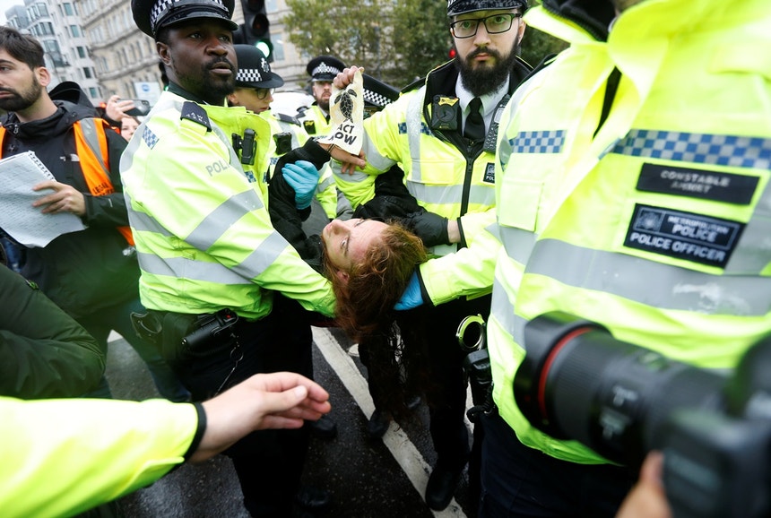 A polícia metropolitana britânica prendeu esta segunda-feira, pelas 11h30 locais, cerca de 135 manifestantes devido aos protestos considerados excessivos contra as alterações climáticas.