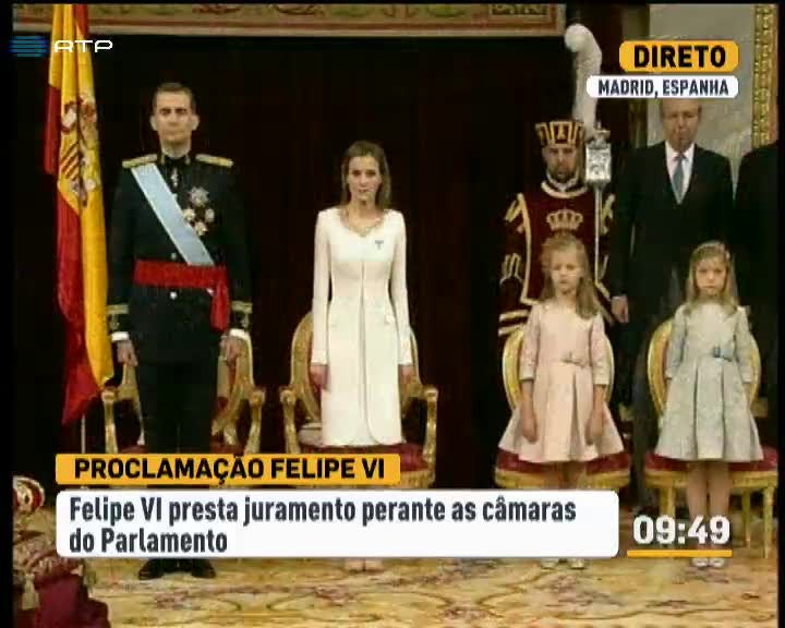"As Cortes Gerais acabam de receber o juramento. Em cumprimento da Constituição, fica proclamado Rei de Espanha Dom Felipe de Borbón y Grecia, que governará como Rei Felipe VI. Viva o Rei, viva Espanha", clamou Jesus Posada, para depois se ouvir o hino nacional espanhol.
