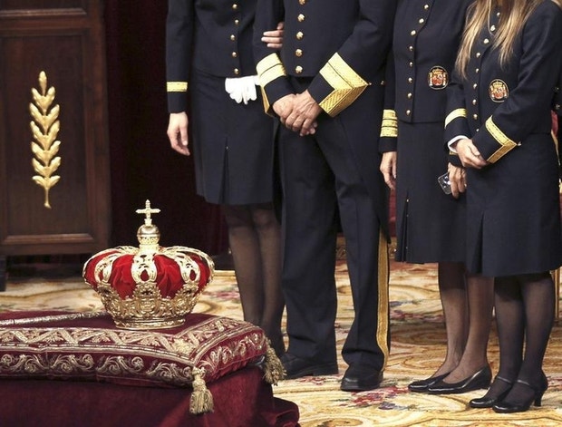 Em contraste com a proclamação de Juan Carlos, que jurou com a mão sobre a Bíblia e ao lado de um crucifixo, o único símbolo religioso que se destacou na cerimónia desta quinta-feira foi a cruz que encima a coroa.