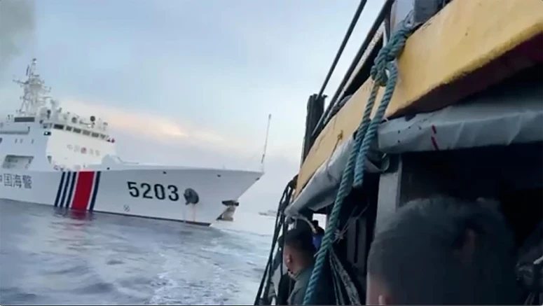 "As manobras perigosas de bloqueio do navio 5203 da guarda costeira chinesa provocaram a colisão com o navio de abastecimento (...) contratado pelas Forças Armadas das Filipinas" nas Spratlys, a cerca de 25 quilómetros do atol Second Thomas Shoal, onde está estacionada a Marinha filipina, referiu um grupo de trabalho governamental.