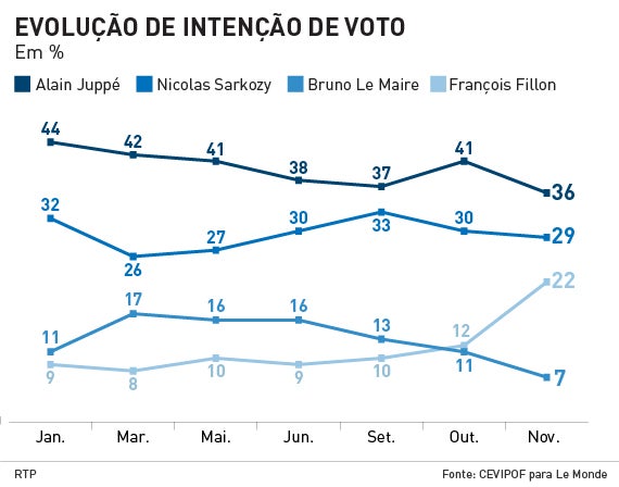 Mais do que possíveis vencedores, as sondagens revelam que há uma tendência de crescimento das intenções de voto em François Fillon e uma descida do apoio a Alain Juppé. Resta perceber como se traduzirá esta tendência no voto e na afluência às urnas.