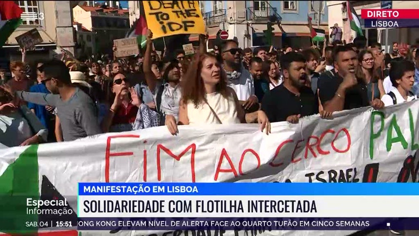 Decorre este sábado, em Lisboa, uma manifestação em solidariedade com a flotilha intercetada pelas forças israelitas. O protesto exige a libertação dos quatro ativistas portugueses detidos, grupo em que se inclui a deputada do Bloco de Esquerda.