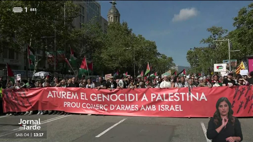 Em Barcelona, os manifestantes exigem o fim do genocídio e o boicote a Israel.