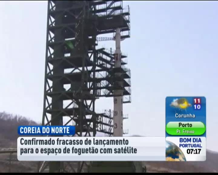 Na Coreia do Norte fracassou o lançamento para o espaço de um foguetão com um satélite. O engenho com tecnologia aplicada em mísseis nucleares caiu no mar poucos minutos depois da descolagem.