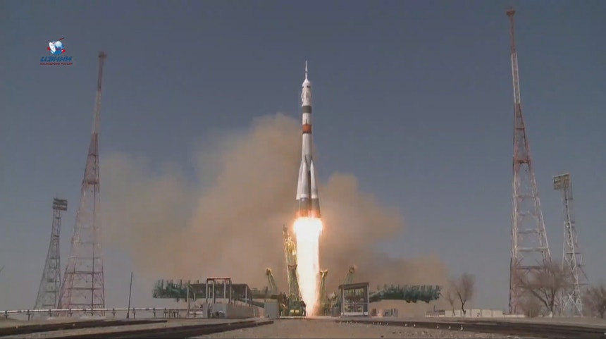 Dois cosmonautas russos e um astronauta americano partiram hoje para a Estação Espacial Internacional (ISS) numa missão em homenagem ao 60.º aniversário do envio do primeiro homem ao espaço, Yuri Gagarin.