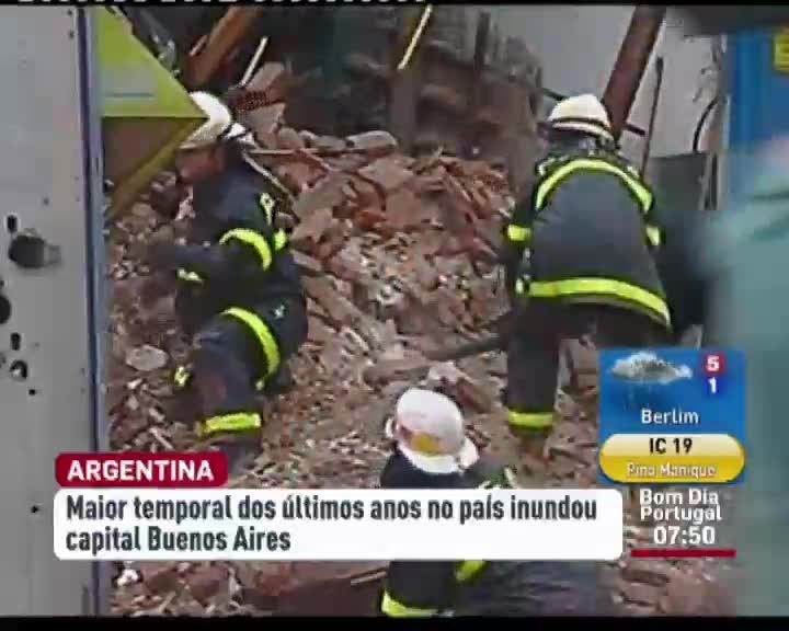 A capital da Argentina ficou parcialmente inundada com o maior temporal dos últimos anos. Chuva intensa e ventos fortes obrigaram a suspender os transportes públicos em várias zonas de Buenos Aires.