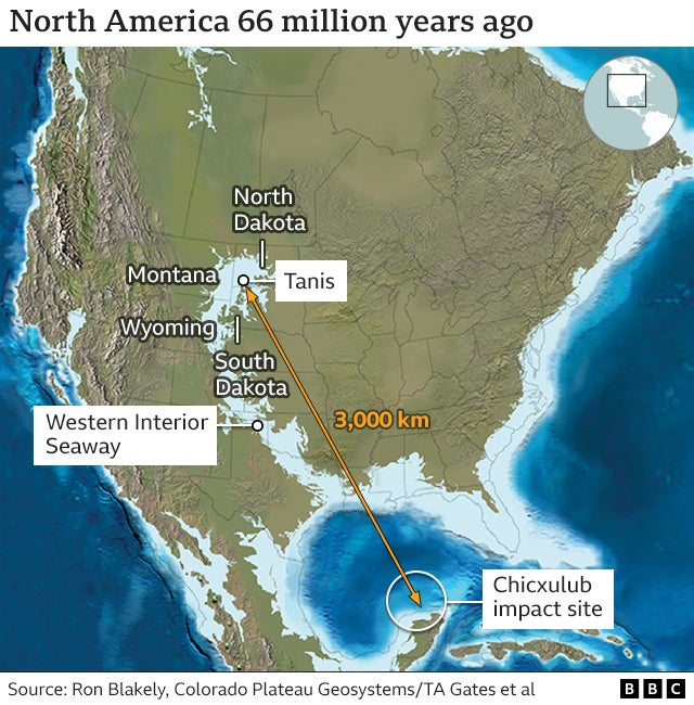 No Estado norte-americano de Dakota do Norte, o sítio de Tanis tem revelado inúmeros fósseis muito bem preservados com pormenores que, de acordo com os cientistas, podem ser associados ao momento da explosão de há 66 milhões de anos.