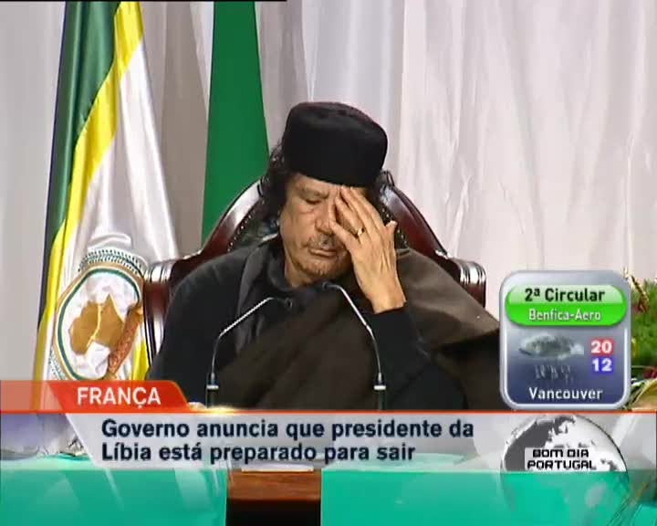 O ministro francês dos Negócios Estrangeiros garante que Muamar Kadafi está preparado para abandonar o poder na Líbia. Alain Juppé esteve reunido com emissários do coronel líbio e disse que esse abandono será um grande passo para o fim do conflito. O ministro francês dos Negócios Estrangeiros garante que está a fazer tudo para conseguir desbloquear o braço-de-ferro na Líbia.