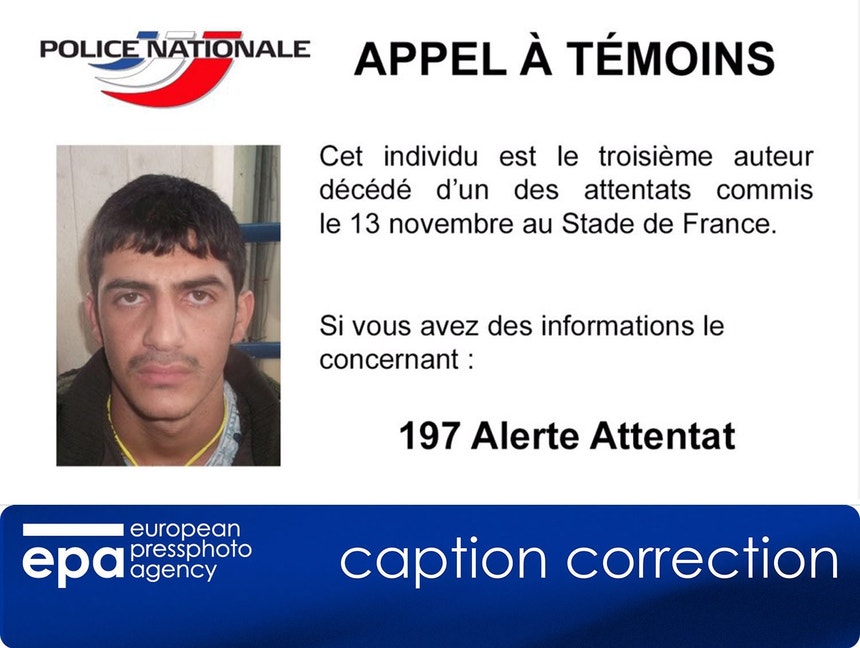 As autoridades francesas divulgaram a fotografia do terceiro bombista suicida do Estádio de França.