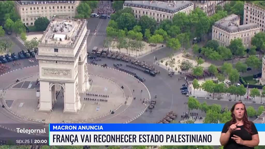 A França vai ser o primeiro grande pais ocidental a reconhecer o Estado da Palestina. Apesar da condenação desse gesto pelos Estados Unidos e por Israel, o presidente francês já disse que formaliza a decisão em Setembro perante as Nações Unidas como forma de "dar razão ao campo da paz".