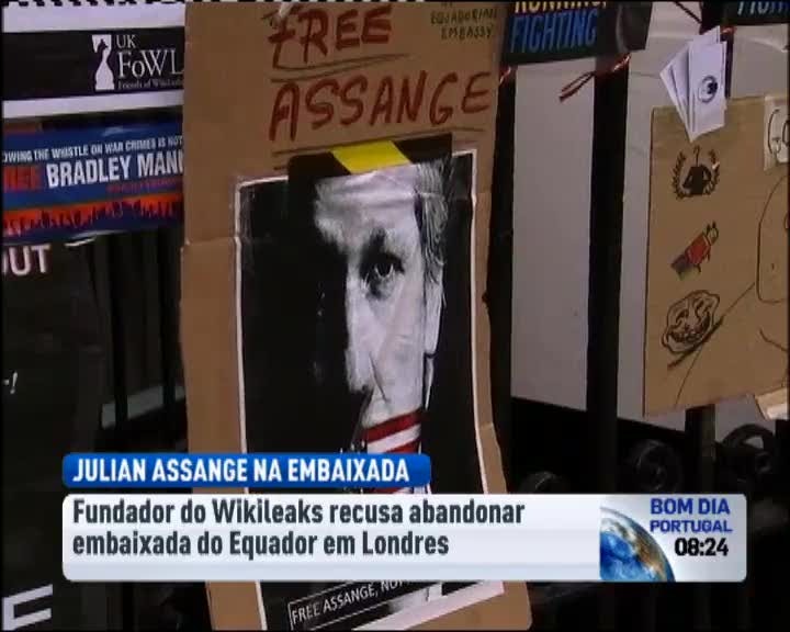 Julian Assange mantém-se na Embaixada do Equador em Londres até que o país decida sobre o pedido de asilo político. O criador do portal WikiLeaks refugiou-se naquelas instalações diplomáticas na semana passada depois de o Supremo Tribunal britânico ter rejeitado o último apelo de extradição para a Suécia.