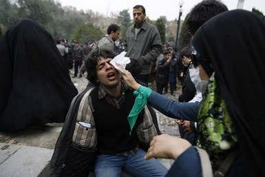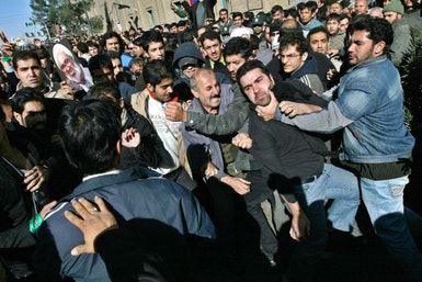 O site oposicionista Rahesabz.net dá conta de confrontos entre elementos da Ansar Hezbollah, uma facção pró-regime, e partidários da Oposição. Mas também entre a polícia e os apoiantes de Mousavi e Karoubi, que preenchiam a multidão com lenços e braçadeiras verdes, a cor adoptada pelos adversários de Mahmud Ahmadinejad. Outro dos sites da Oposição, Kaleme.org, adianta que alguns dos manifestantes atiraram pedras às forças de segurança. Centenas de membros da milícia Basidj rumaram à residência do grande ayatollah Ali Montazeri, de onde terão levado todas as faixas de luto.
