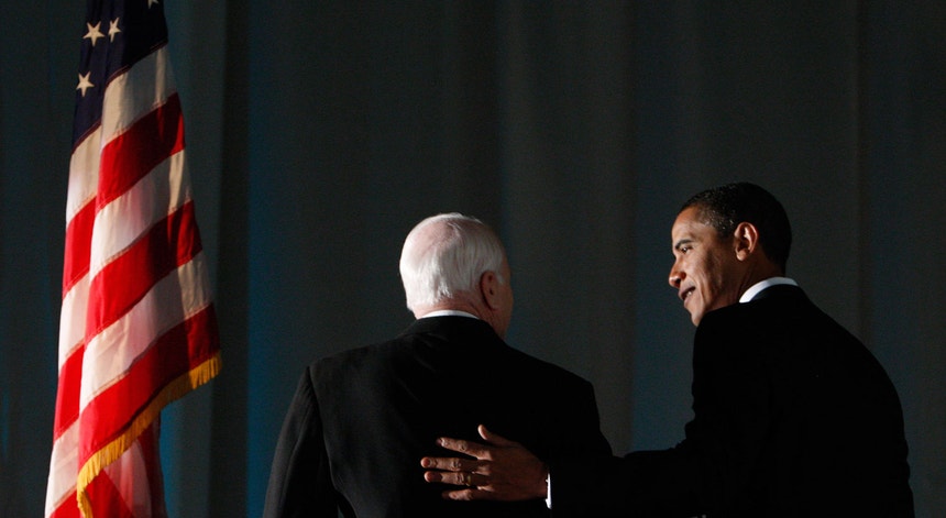 O herói de guerra tentou por duas vezes ser Presidente dos Estados Unidos. Em 2000, perdeu a nomeação republicana para George W. Bush. Em 2008, com Sarah Palin como “número dois” e então com 72 anos, McCain perdeu as eleições presidenciais para Barack Obama, num contexto económico difícil para os republicanos.