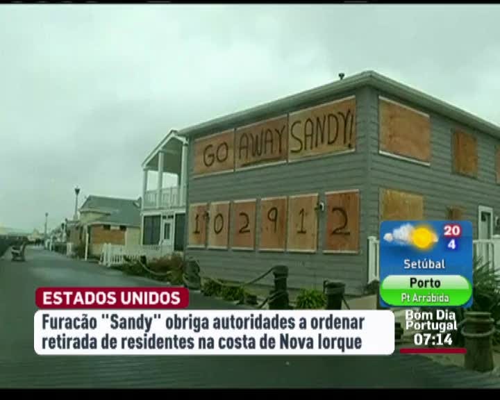 O furacão Sandy deverá atingir hoje ao final do dia a costa leste dos Estados Unidos. O furacão ganhou velocidade nas últimas horas graças a uma frente fria. Os meteorologistas dizem que o furacão irá atingir primeiro o estado de New Jersey, seguindo depois pela costa para norte em direção a Nova Iorque.