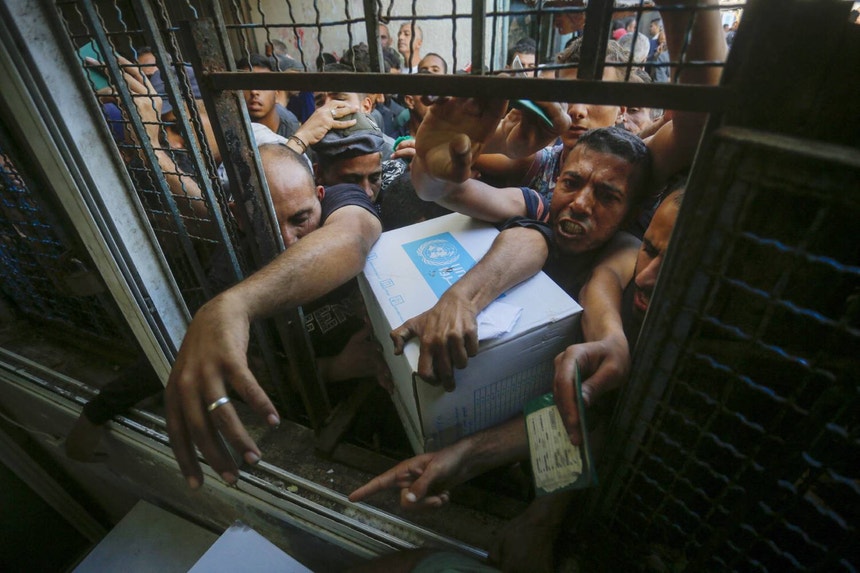 No início da guerra, à medida que os alimentos se tornavam cada vez mais escassos, habitantes desesperados de Gaza eram por vezes vistos a roubar camiões de ajuda que chegavam.