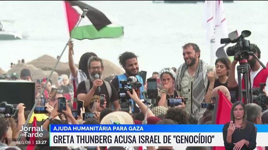 Entre outros ativistas pró-palestinianos, segue a ativista ambiental Greta Thunberg que acusa Israel de "genocídio".