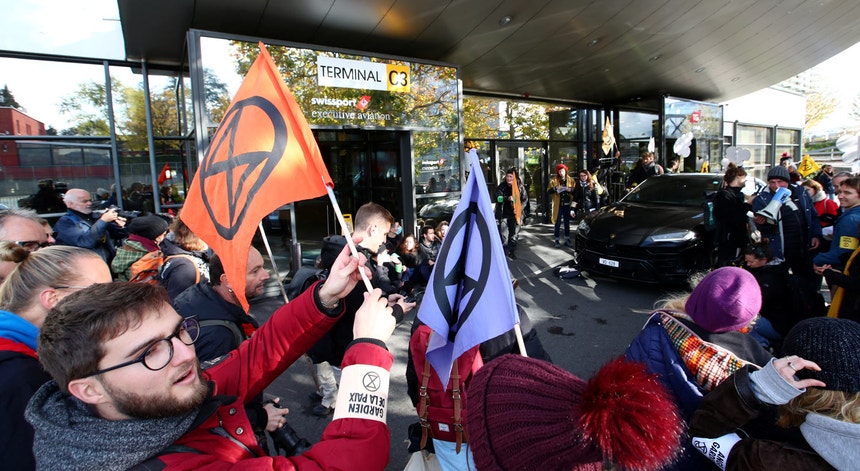 Cerca de uma centena de pessoas juntaram-se este sábado no aeroporto de Genebra, respondendo a um apelo do movimento ecologista Extinction Rebellion para bloquear o acesso ao terminal reservado a jatos privados e exigir o fim deste modo de transporte.