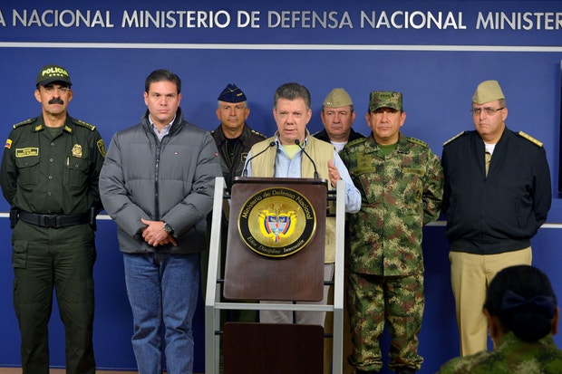 Juan Manuel Santos reuniu-se com a liderança militar no Ministério da Defesa e anunciou que a viagem dos delegados do Governo planeada para esta segunda-feira a Cuba ficaria sem efeito. A viagem estava integrada nas negociações de paz que decorrem desde 2012.