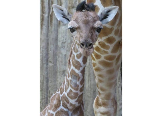 A girafa nasceu com 1,52 cm de altura e 73 quilos e não teve um início de vida fácil, pois necessitou de uma injeção de plasma para melhorar o sistema imunológico.