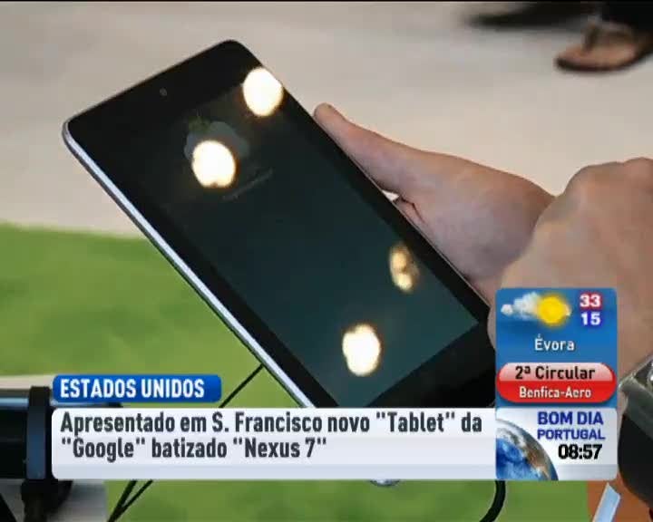 Nos Estados Unidos, a Google apresentou ontem um novo tablet, o Nexus 7. Tem écran de sete polegadas, sistema operativo Android e pesa 340 gramas. Concorre com a Apple e a Amazon. O Nexus 7 foi ontem apresentado em São Francisco e vai chegar em breve também à Europa.