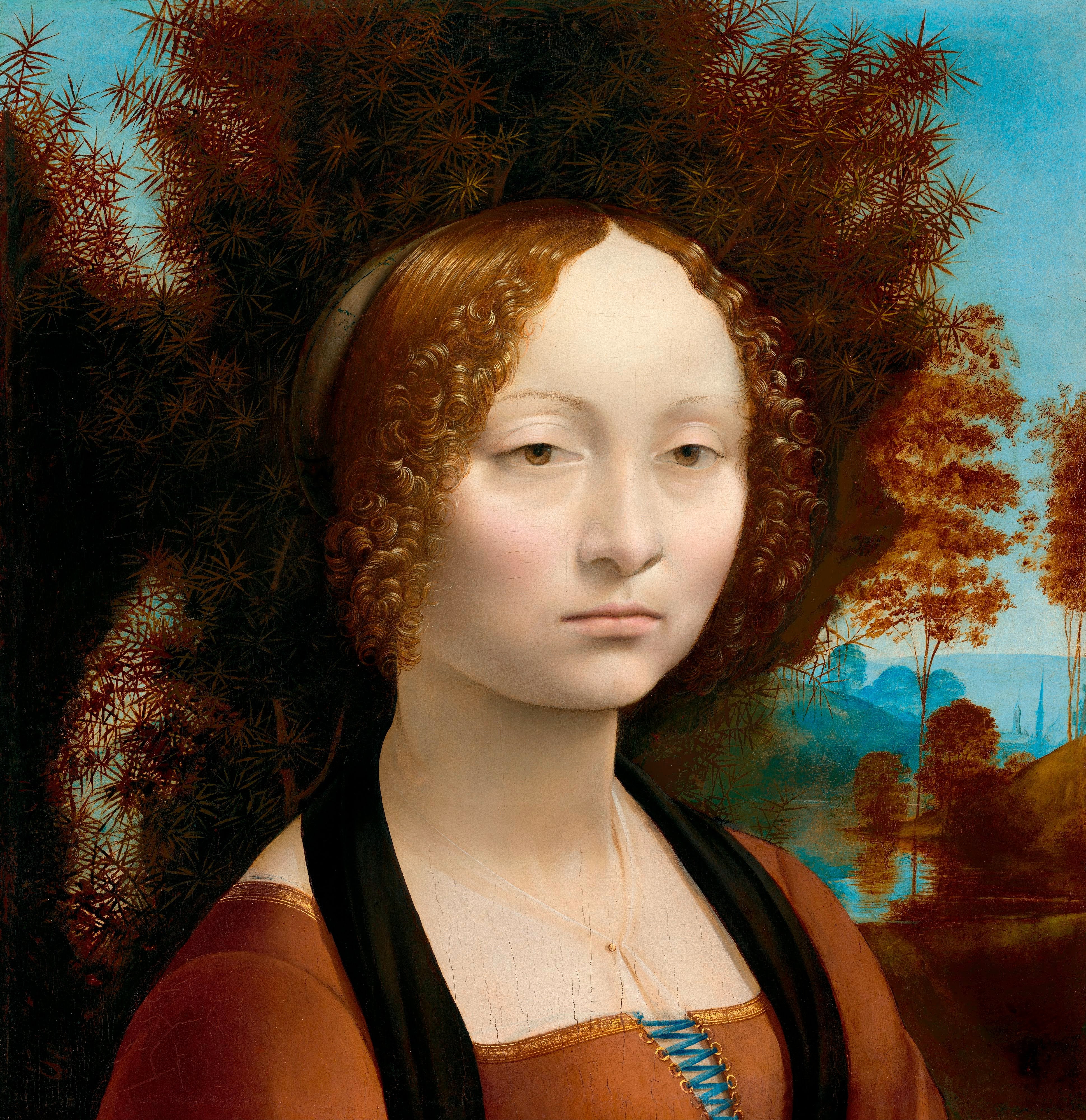 Qualquer um pode ampliar a única pintura de Leonardo que se encontra na América do Norte, mais precisamente na Washington National Gallery of Art: o retrato de Ginevra de' Benci, que antecipa a composição e o estilo da Mona Lisa.
