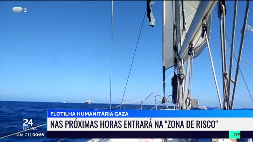 O Governo reiterou esta terça-feira o apelo aos ativistas portugueses a bordo da Flotilha Global Sumud que pretende levar ajuda humanitária à Faixa de Gaza para que se mantenham em águas internacionais, alertando para "riscos muito sérios". A flotilha deverá entrar durante a noite na zona de risco israelita e a Marinha israelita já disse estar pronta para intercetar a frota.