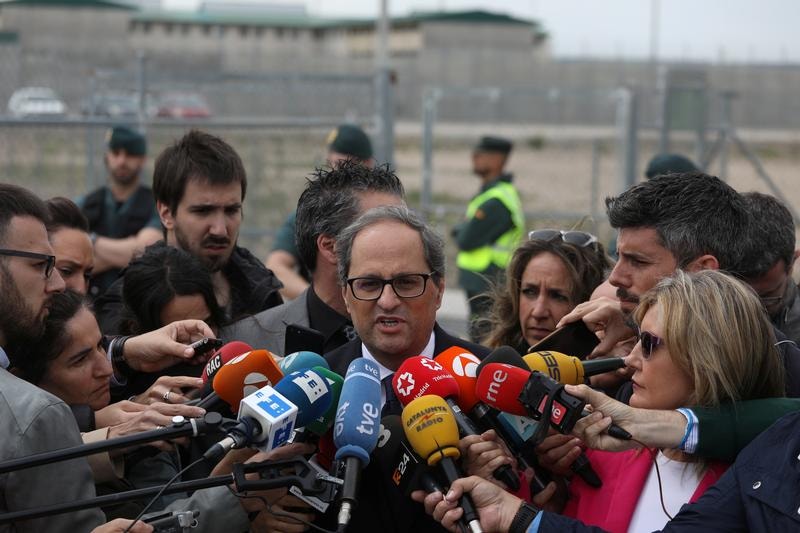 Esta segunda-feira, o novo presidente da Generalitat visitou Josep Rull e Jordi Turull no estabelecimento prisional de Estremera, onde continuam detidos os dois dos ex-conselheiros de Carles Puidgemont, por sua vez exilado em Berlim.