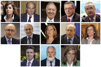 13 ministros apenas, contra os anteriores 15 de Zapatero. Mariano Rajoy nomeou hoje o seu governo, entre eles, Luis de Guindos, antigo responsável do Banco Lehman Brothers para Espanha e Portugal. O executivo inclui ainda quatro mulheres, entre elas, Soraya Sáenz de Santamaría, nomeada única vice-presidente, acumulando com o cargo de porta-voz e ministra da Presidência.