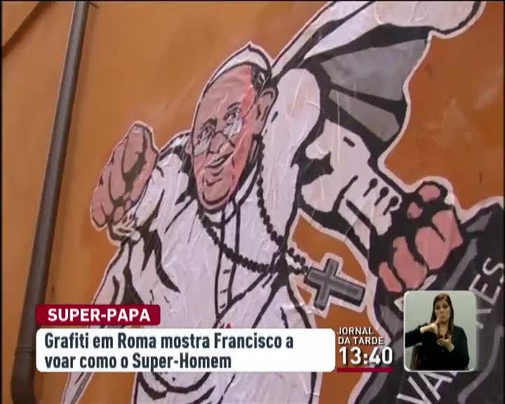 A popularidade do papa Francisco é também "glorificada" num graffiti que apareceu nos últimos dias numa parede em Roma, a poucas centenas de metros do Vaticano. Na pintura, Francisco aparece a voar como um super-homem, levando na mão uma pasta com a palavra "valores".