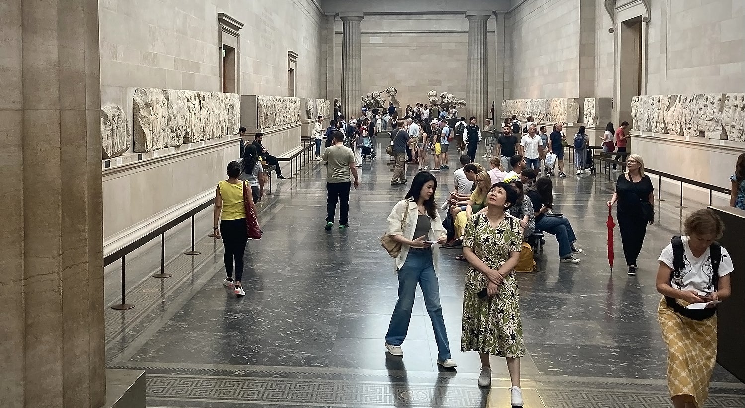 A coleção do Museu Britânico incorpora quase metade do friso do Partenon, com 160 metros de comprimento, que representa a procissão até o templo do festival Panatenaico em homenagem à deusa guerreira Atena. A narrativa esculpida imprime uma ilusão de movimento à história contada.