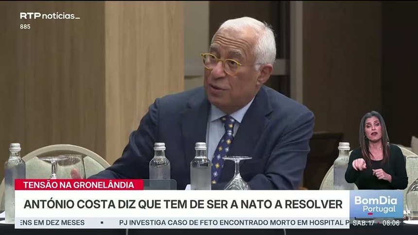"Os Estados Unidos consideram que há um problema de segurança e uma ameaça", recordou António Costa, frisando que deve ser tratado no âmbito da Aliança Atlântica, "porque é à NATO que cabe assegurar a Defesa da Gronelândia".