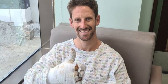 Grosjean, de 34 anos, deixou esta quarta-feira o hospital militar do Bahrain, onde se encontrava a recuperar das queimaduras sofridas no acidente espetacular que sofreu no domingo, no qual saiu pelo próprio pé do monolugar em fogo e partido em dois.