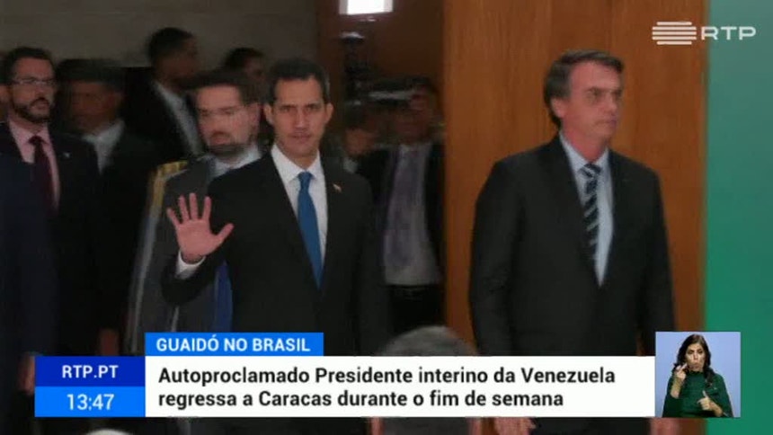 Antes de regressar a Caracas, o auto proclamado presidente interino venezuelano esteve em Brasilia, onde se reuniu com o novo chefe de Estado brasileiro.