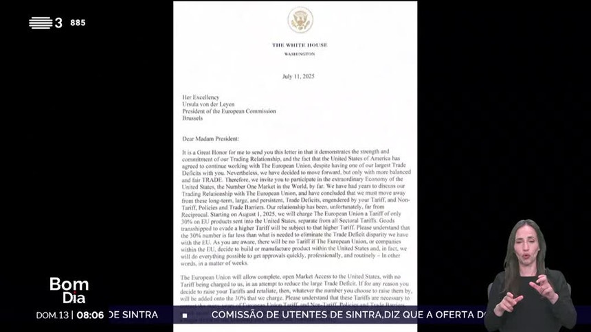 Donald Trump anunciou no sábado tarifas de 30 por cento para a União Europeia (UE) e para o México e ameaça subir este valor se houver retaliação. Em resposta ao anúncio, Bruxelas garante que vai fazer tudo para salvaguardar os interesses da Europa.