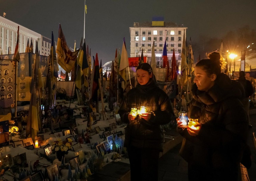 O dia em que os russos iniciaram há quatro anos a invasão foi hoje assinalado em Kiev com silêncio.